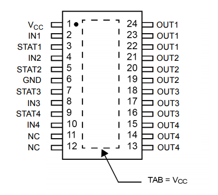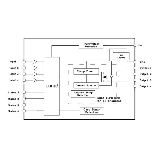 The VNI4140KTR is a monolithic device made using VIPower technology, intended to drive four independent resistive or inductive loads with one side connected to ground. Active current limitation avoids dropping the system power supply in case of shorted load. Built-in thermal shutdown protects the chip from overtemperature and short-circuit.